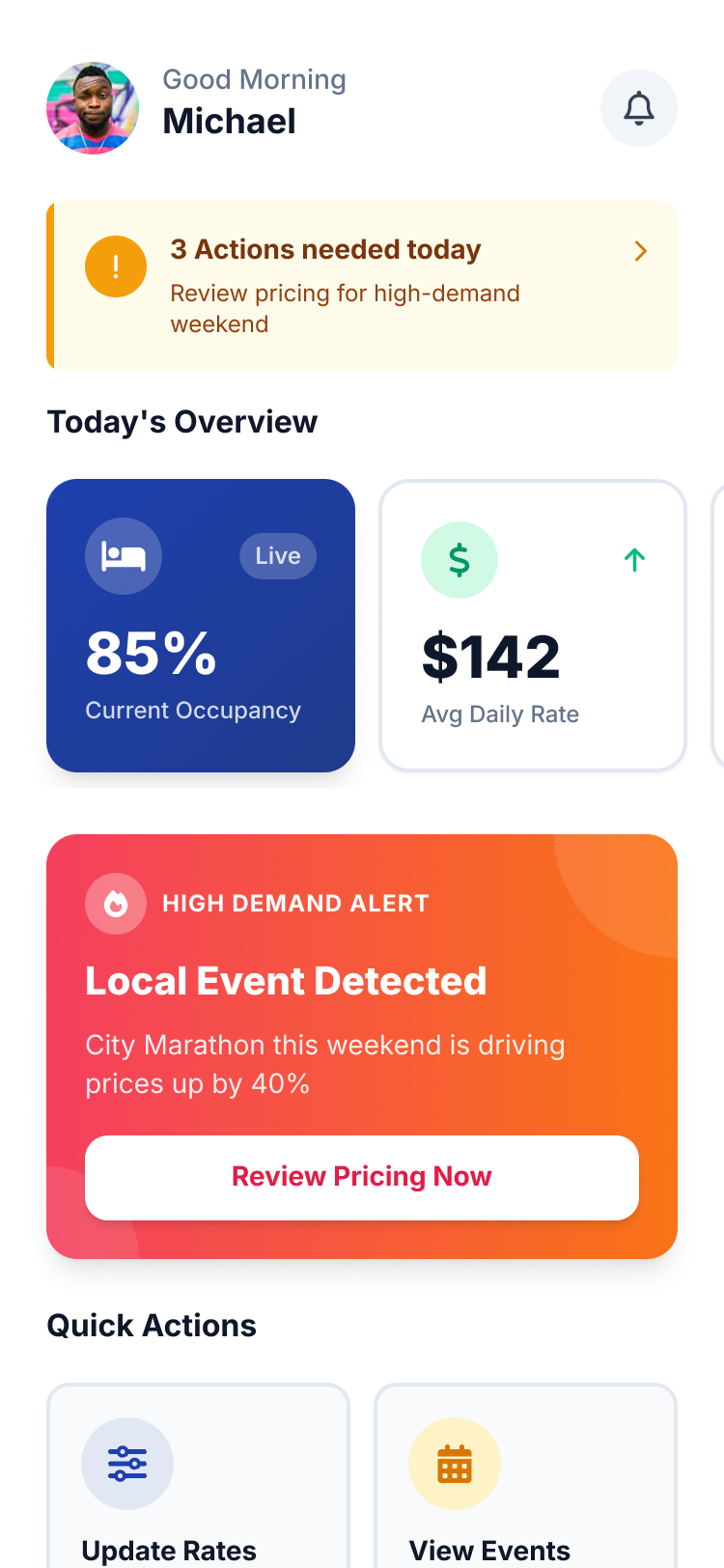 We delivered a mobile-first revenue optimization app tailored for the real-world habits of small hotel owners. The system continuously monitors competitor prices, availability in the area, and upcoming events, then recommends optimal rates in real time. Owners can adjust prices instantly from their phone with minimal effort.