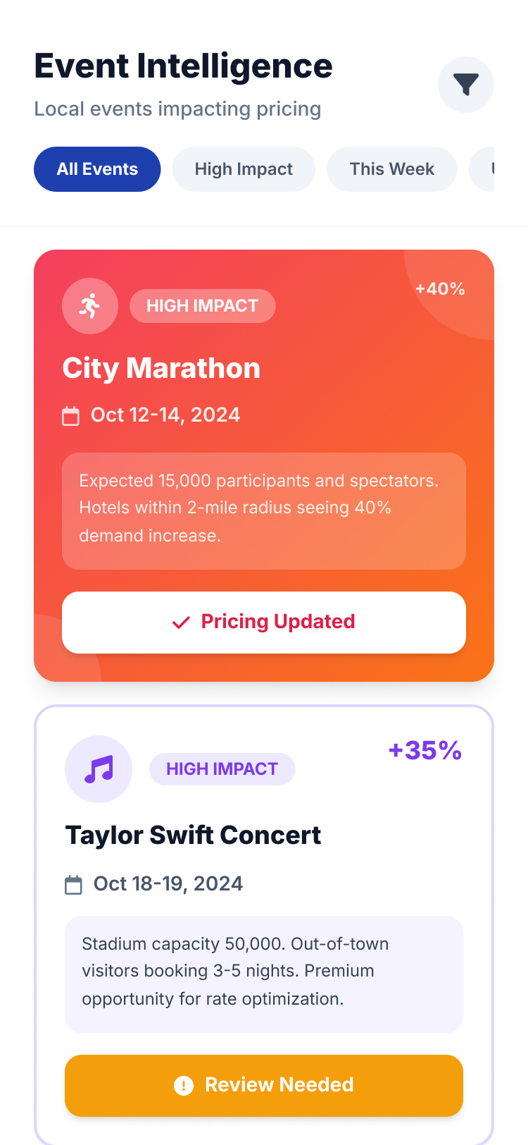 We proposed a pivot from desktop-first to a fully mobile-first product, powered by automated event detection, competitive scraping, and dynamic price recommendations.