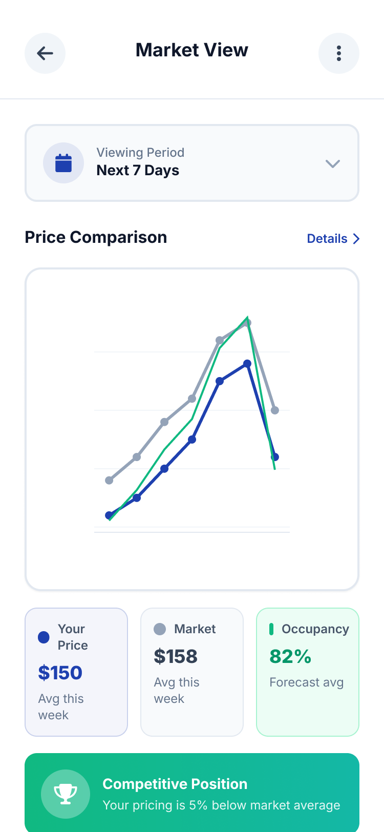 Delivered a mobile-first revenue tool that automates pricing decisions, boosts occupancy, and saves hours of manual market monitoring for small hotel owners.